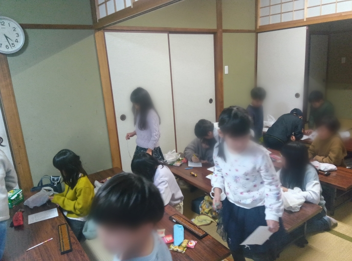 お楽しみ会中。みんなお菓子を選ぶのに一生懸命(笑)